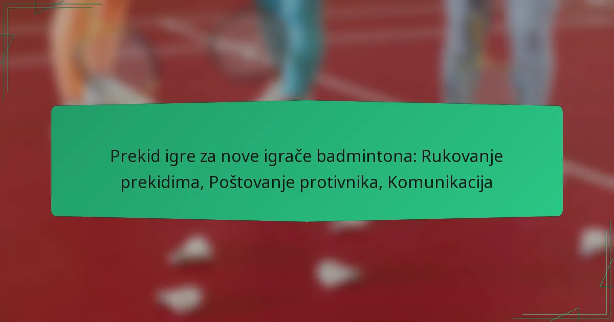 Novi igrači badmintona trebaju pristupiti prekidima igre s fokusom na povratak pribranosti i održavanje poštovanja prema svojim protivnicima. Učinkovito upravljanje prekidima uključuje jasnu komunikaciju, odgovarajuće rješavanje ozljeda i održavanje vrijednosti sportskog ponašanja tijekom meča.