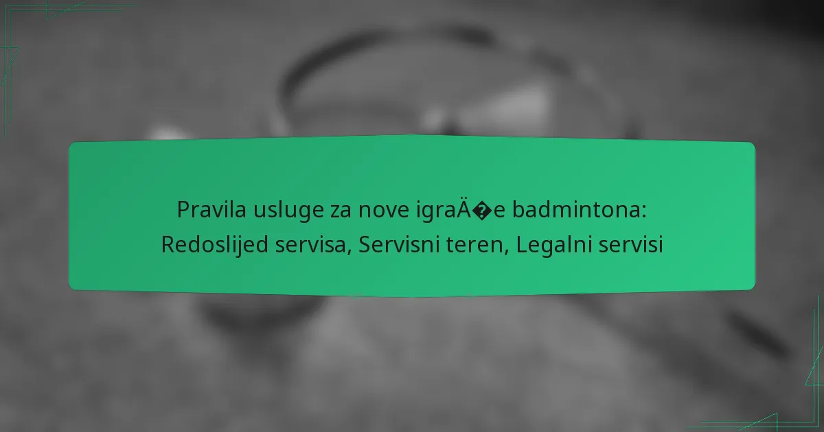 Legalni servis u badmintonu definiran je specifičnim kriterijima koji osiguravaju poštenu igru i pridržavanje pravila. To uključuje ispravnu poziciju, položaj reketa i način udarca shuttlecocka. Razumijevanje ovih elemenata ključno je za nove igrače kako bi ispravno izvršili servise i izbjegli greške.